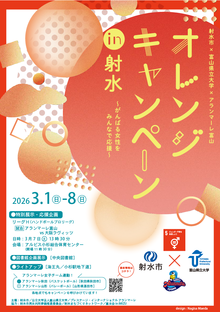 SDGs 5「ジェンダー平等を実現しよう」のロゴカラーであり、女子ハンドボールチーム「アランマーレ」のチームカラーであるオレンジ色でPRし、女性のエンパワーメントやジェンダー平等を促進し、誰もが過ごしやすいまちづくりを目指します。